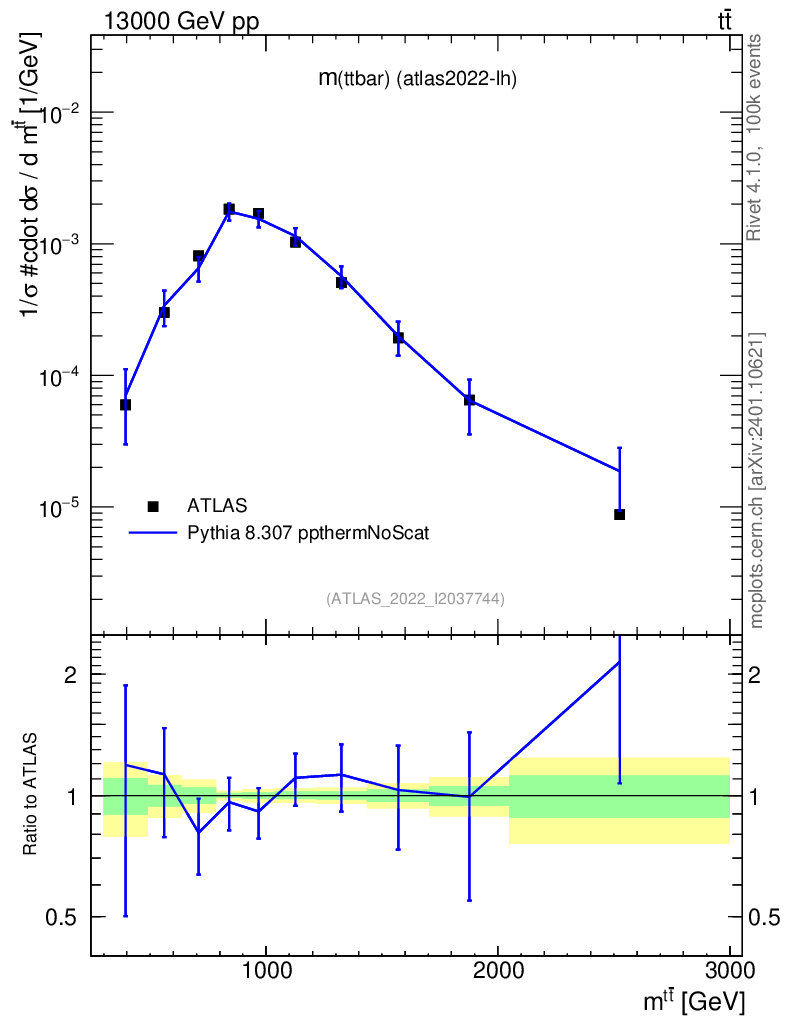 Lines: data, pythia8 8.307 ppthermNoScat |