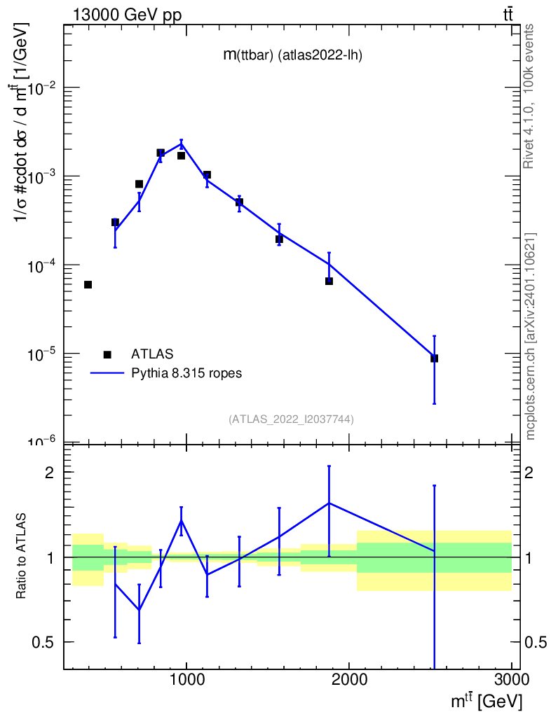 Lines: data, pythia8 8.315 ropes |