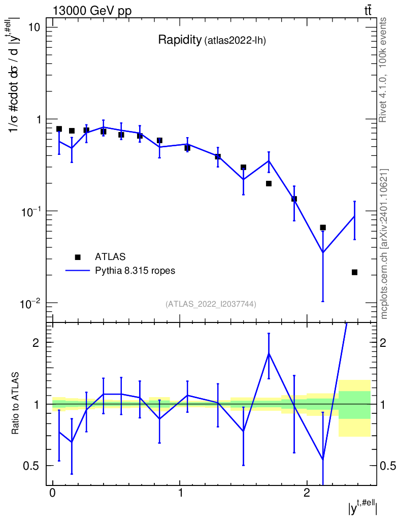 Lines: data, pythia8 8.315 ropes |