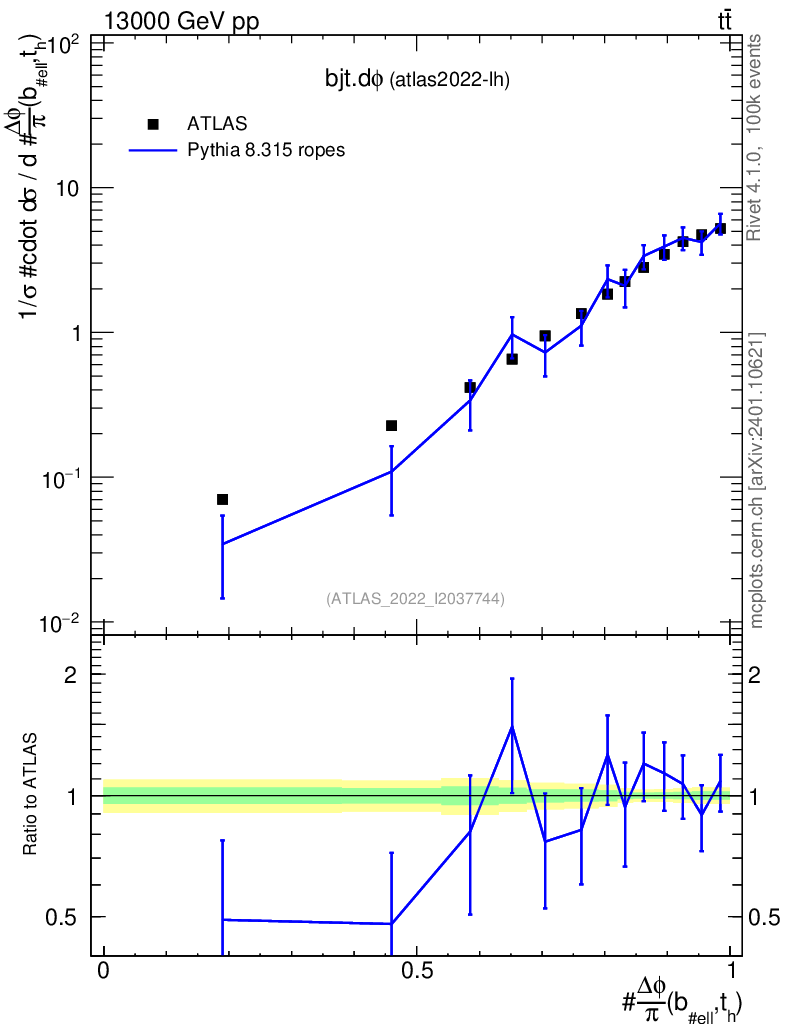 Lines: data, pythia8 8.315 ropes |