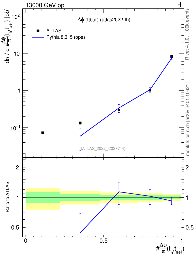 Lines: data, pythia8 8.315 ropes |