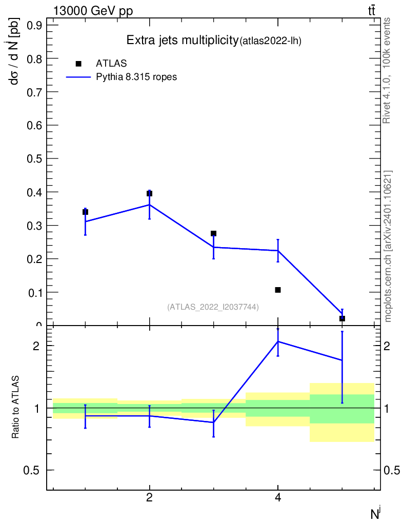 Lines: data, pythia8 8.315 ropes |