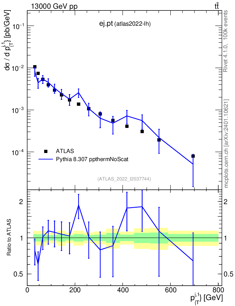 Lines: data, pythia8 8.307 ppthermNoScat |