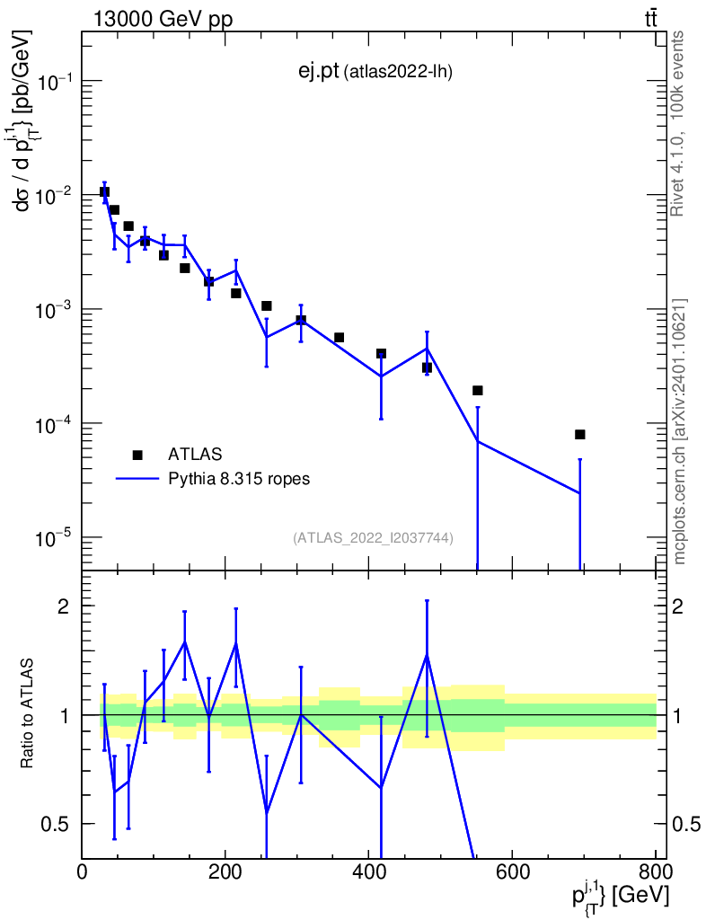 Lines: data, pythia8 8.315 ropes |