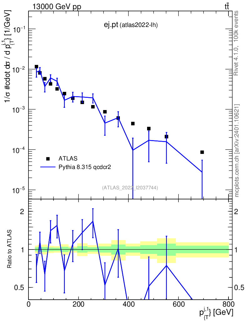 Lines: data, pythia8 8.315 qcdcr2 |