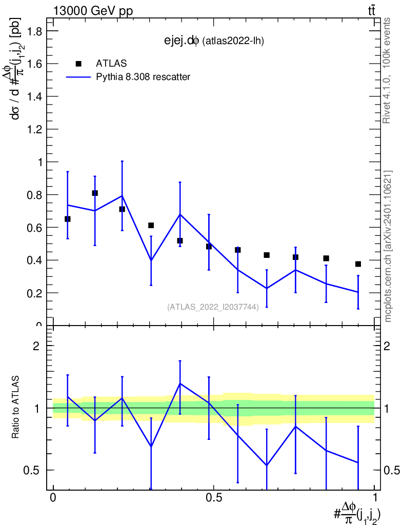 Lines: data, pythia8 8.308 rescatter |