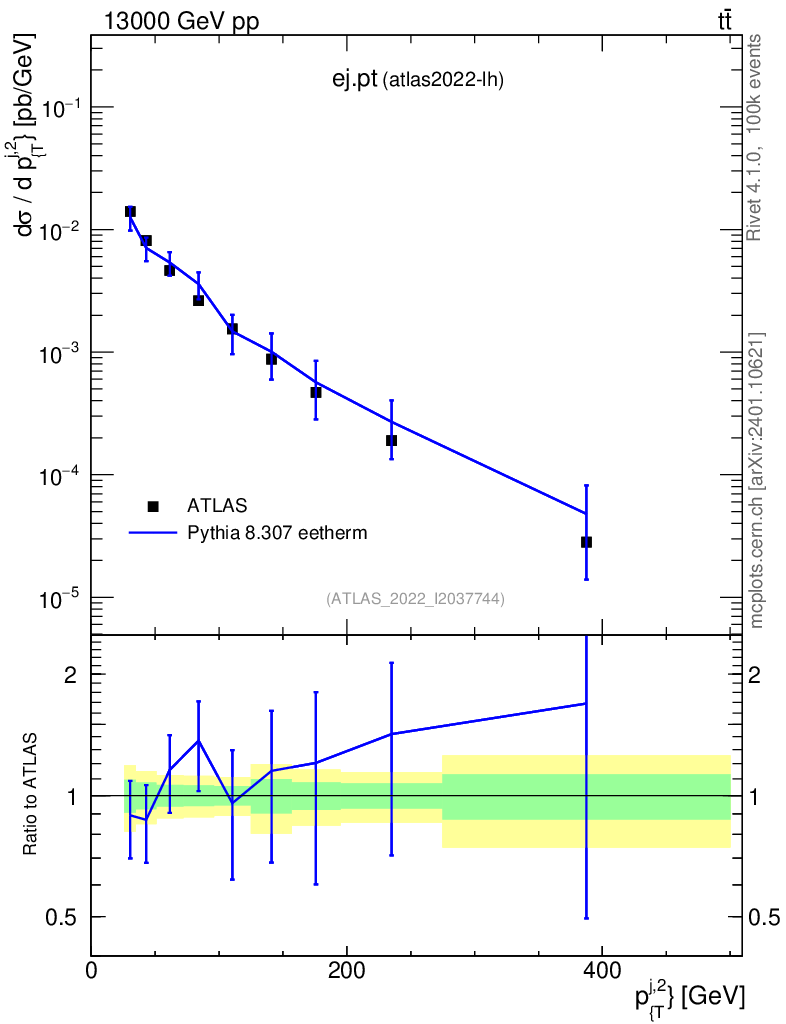 Lines: data, pythia8 8.307 eetherm |