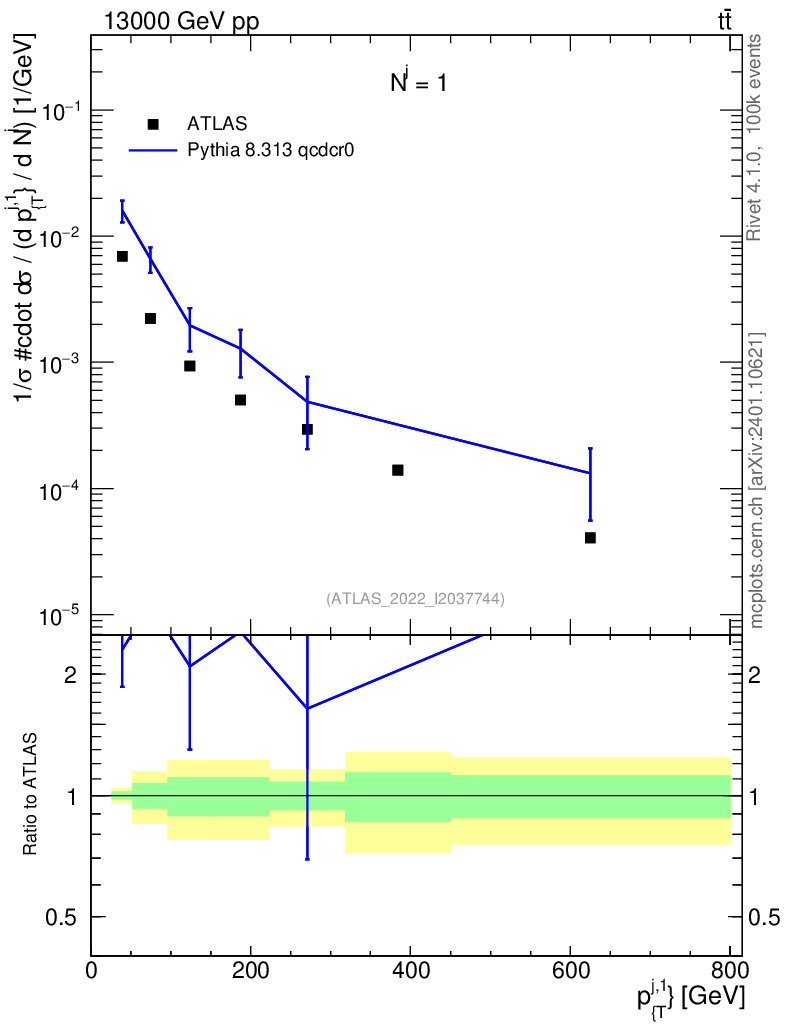 Lines: data, pythia8 8.313 qcdcr0 |