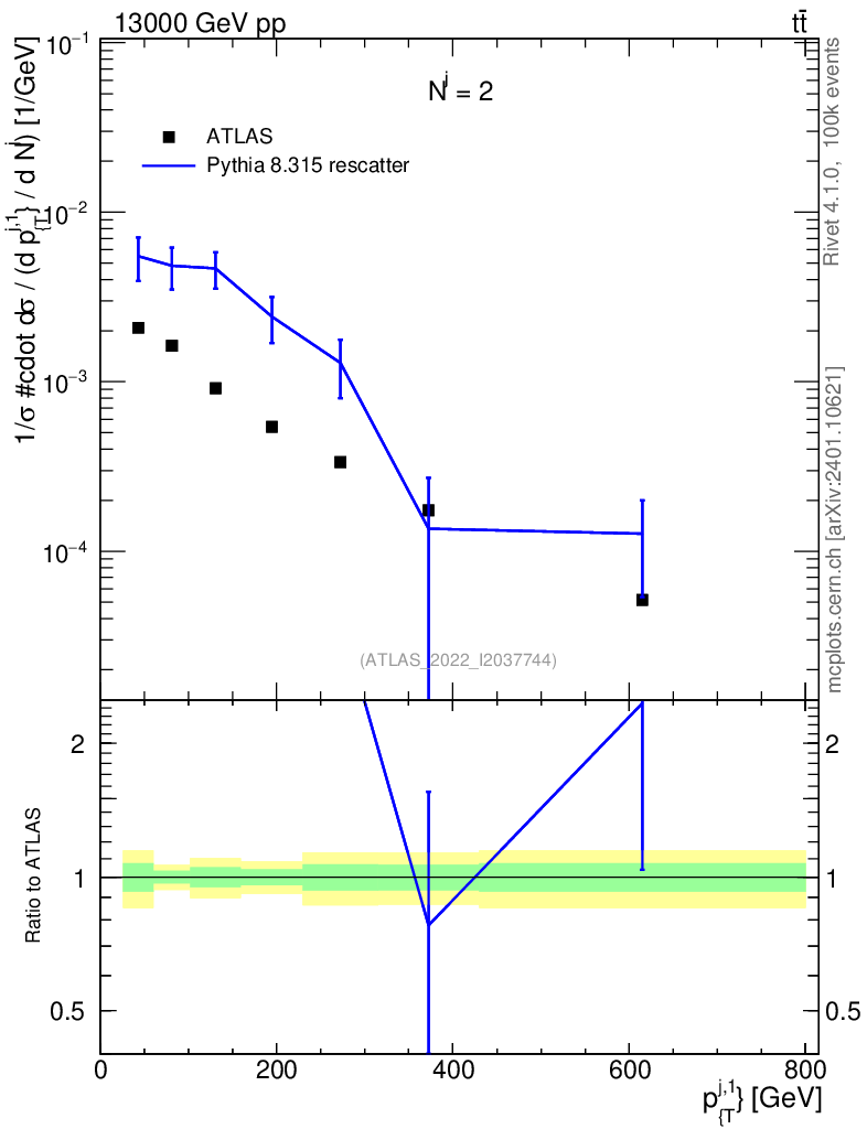 Lines: data, pythia8 8.315 rescatter |