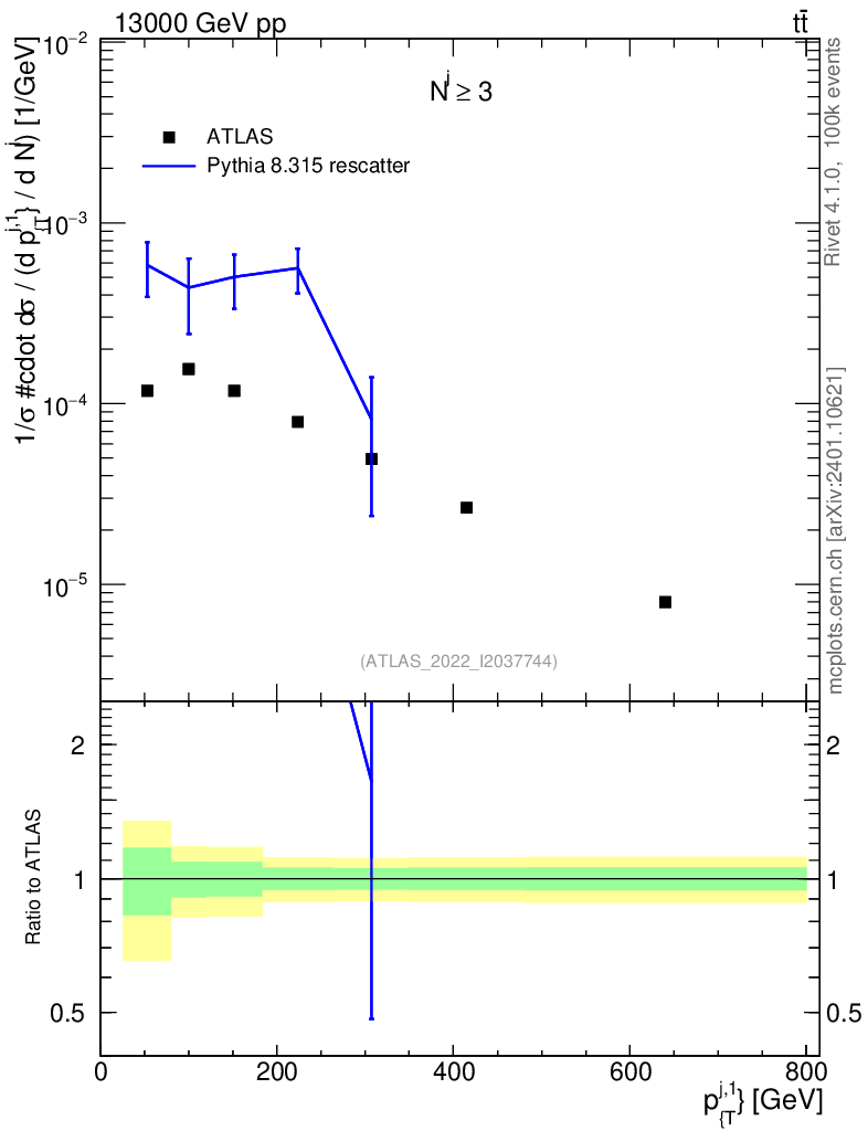 Lines: data, pythia8 8.315 rescatter |