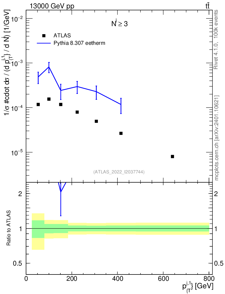 Lines: data, pythia8 8.307 eetherm |