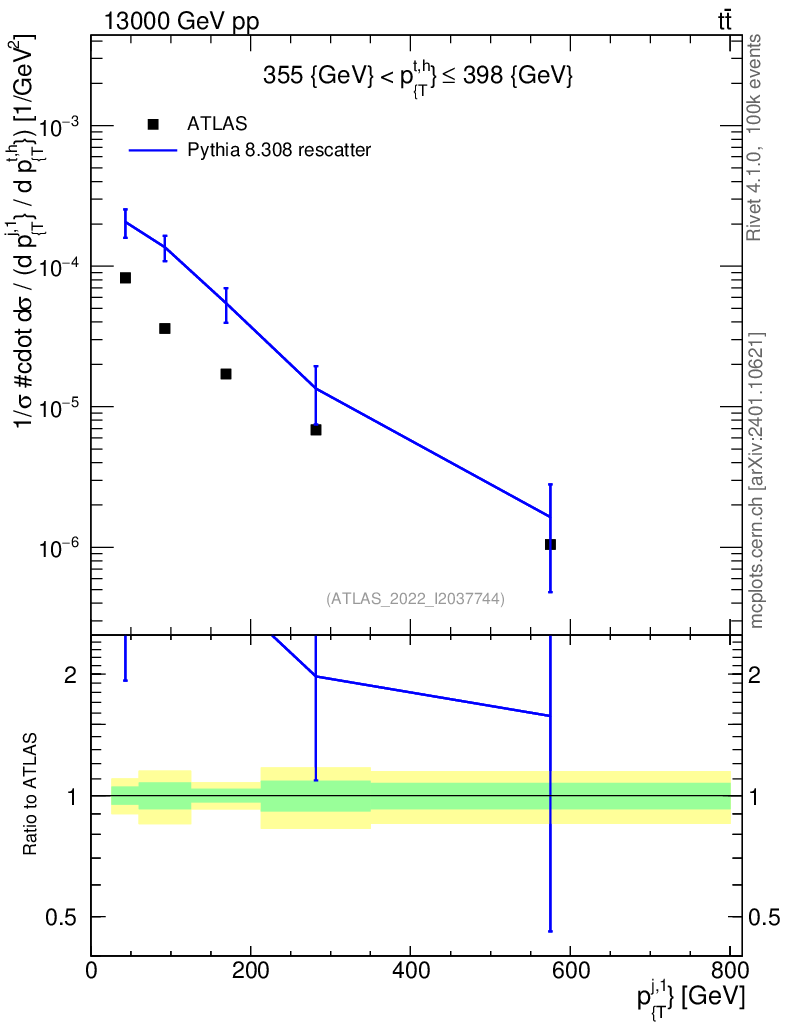 Lines: data, pythia8 8.308 rescatter |