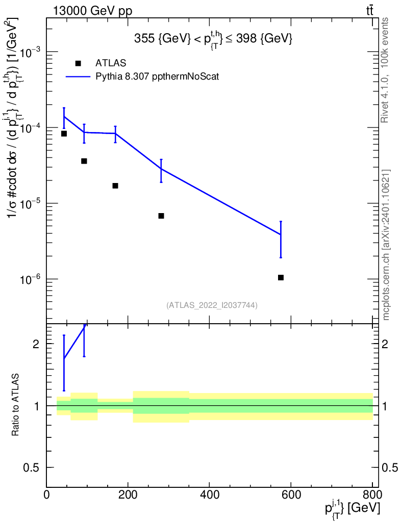 Lines: data, pythia8 8.307 ppthermNoScat |