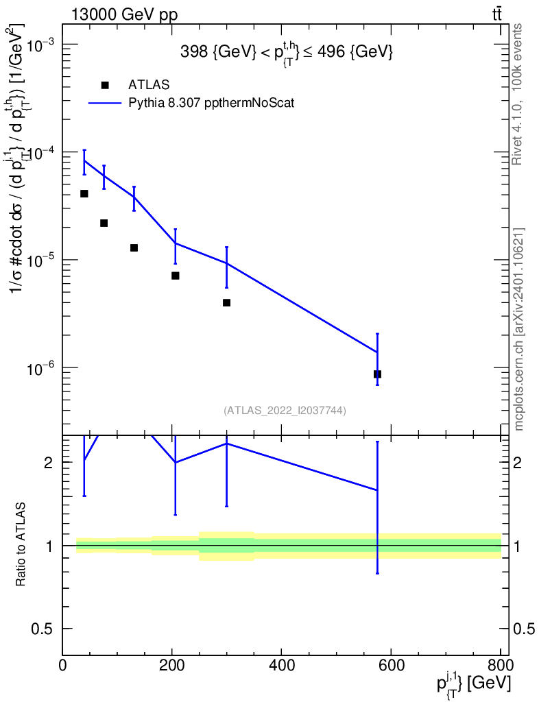 Lines: data, pythia8 8.307 ppthermNoScat |