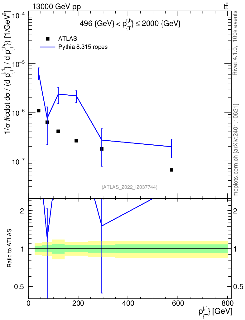 Lines: data, pythia8 8.315 ropes |