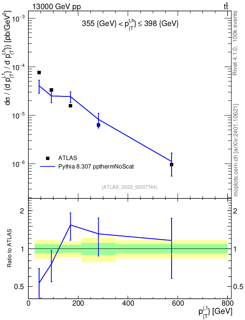 Lines: data, pythia8 8.307 ppthermNoScat |