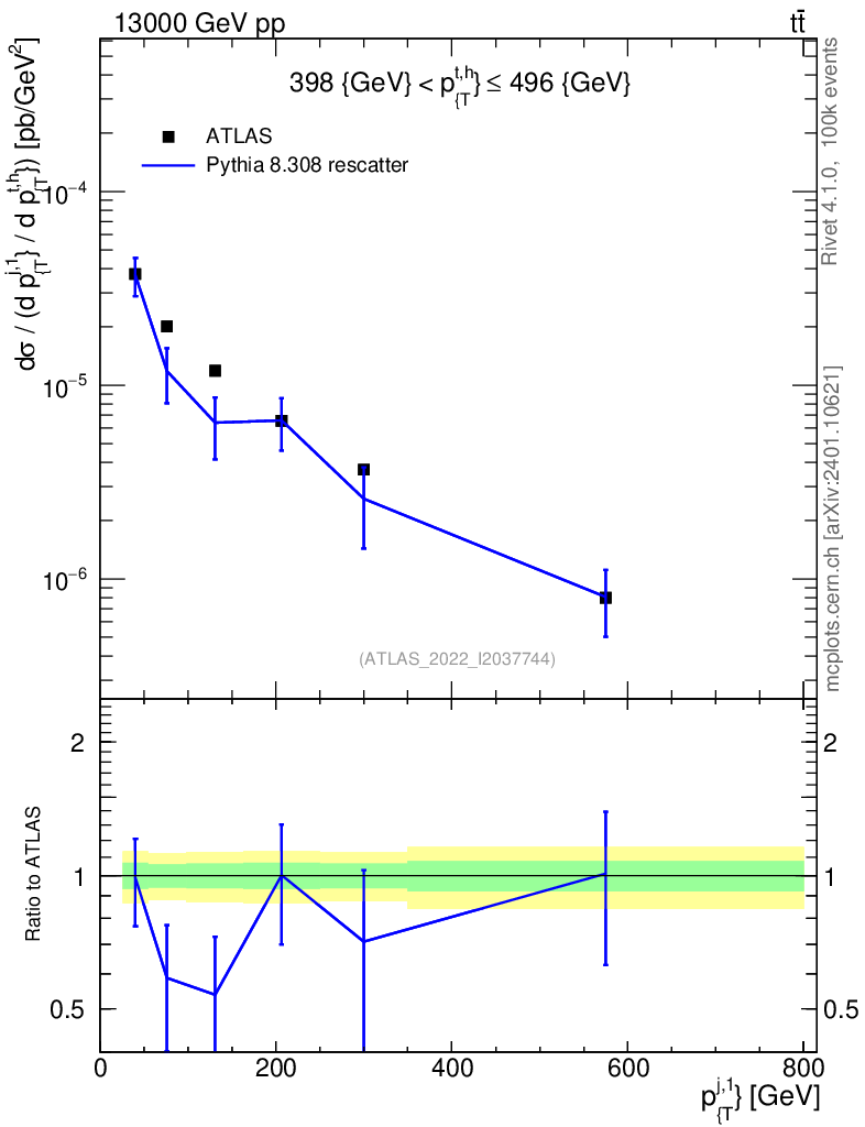 Lines: data, pythia8 8.308 rescatter |