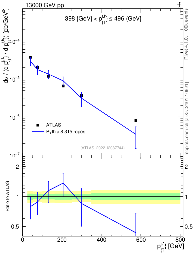 Lines: data, pythia8 8.315 ropes |