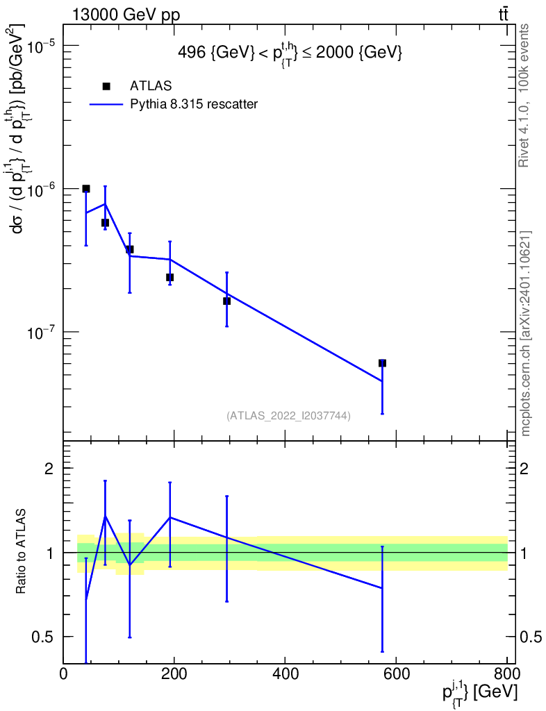 Lines: data, pythia8 8.315 rescatter |