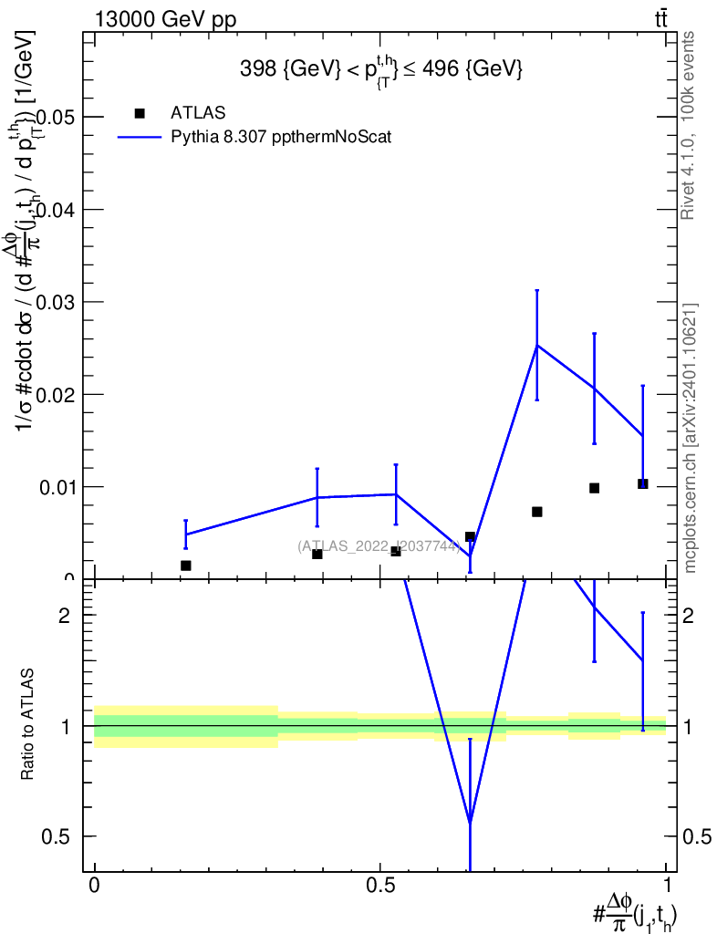 Lines: data, pythia8 8.307 ppthermNoScat |
