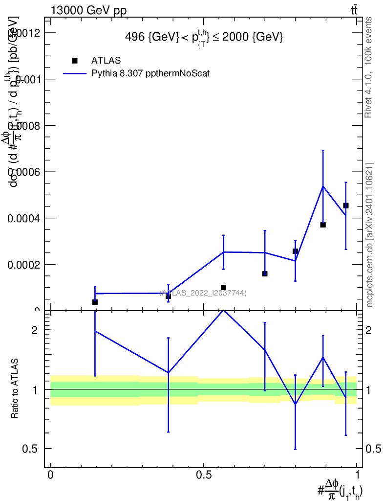 Lines: data, pythia8 8.307 ppthermNoScat |