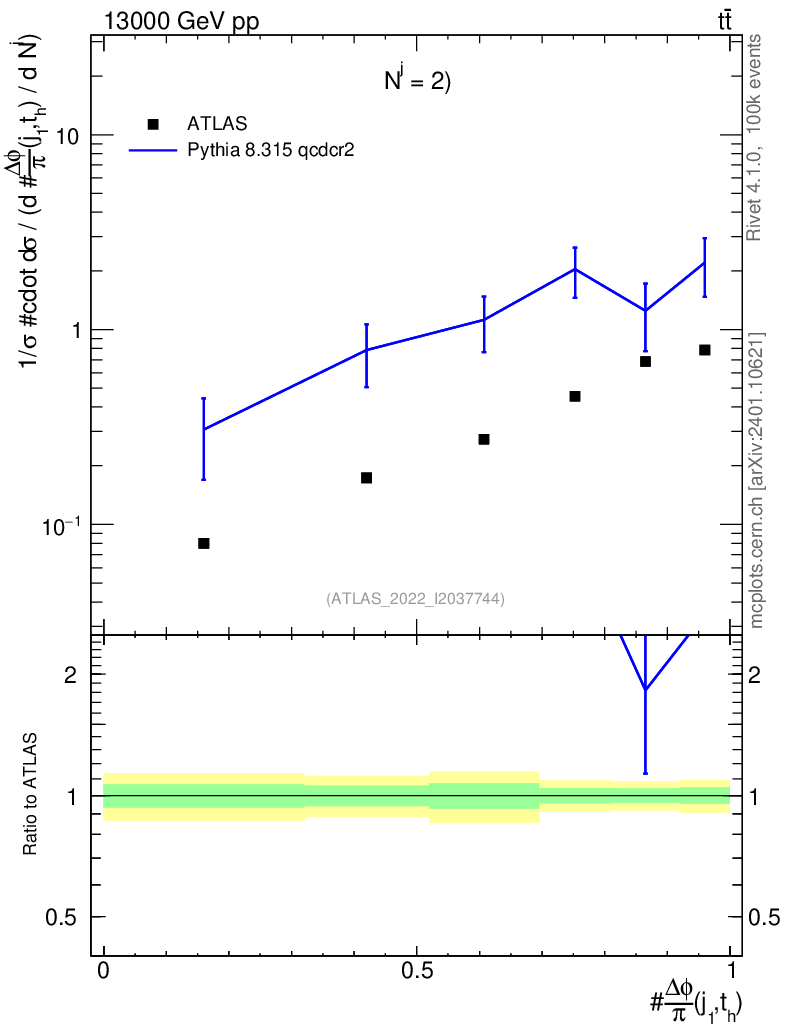 Lines: data, pythia8 8.315 qcdcr2 |