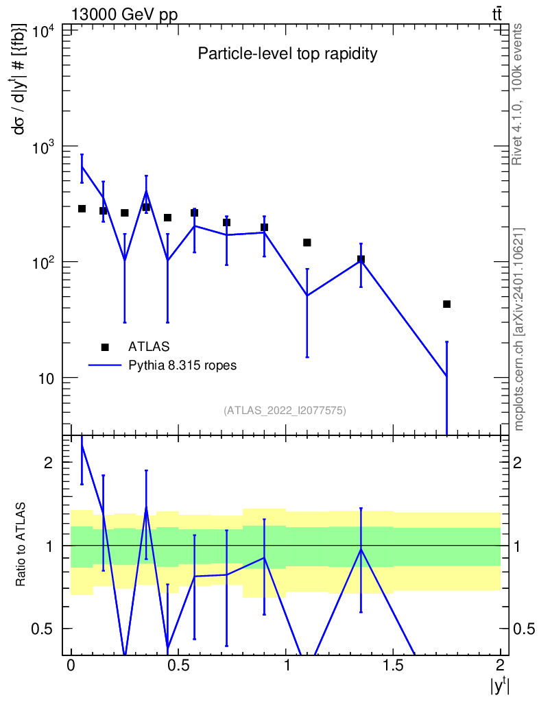 Lines: data, pythia8 8.315 ropes |