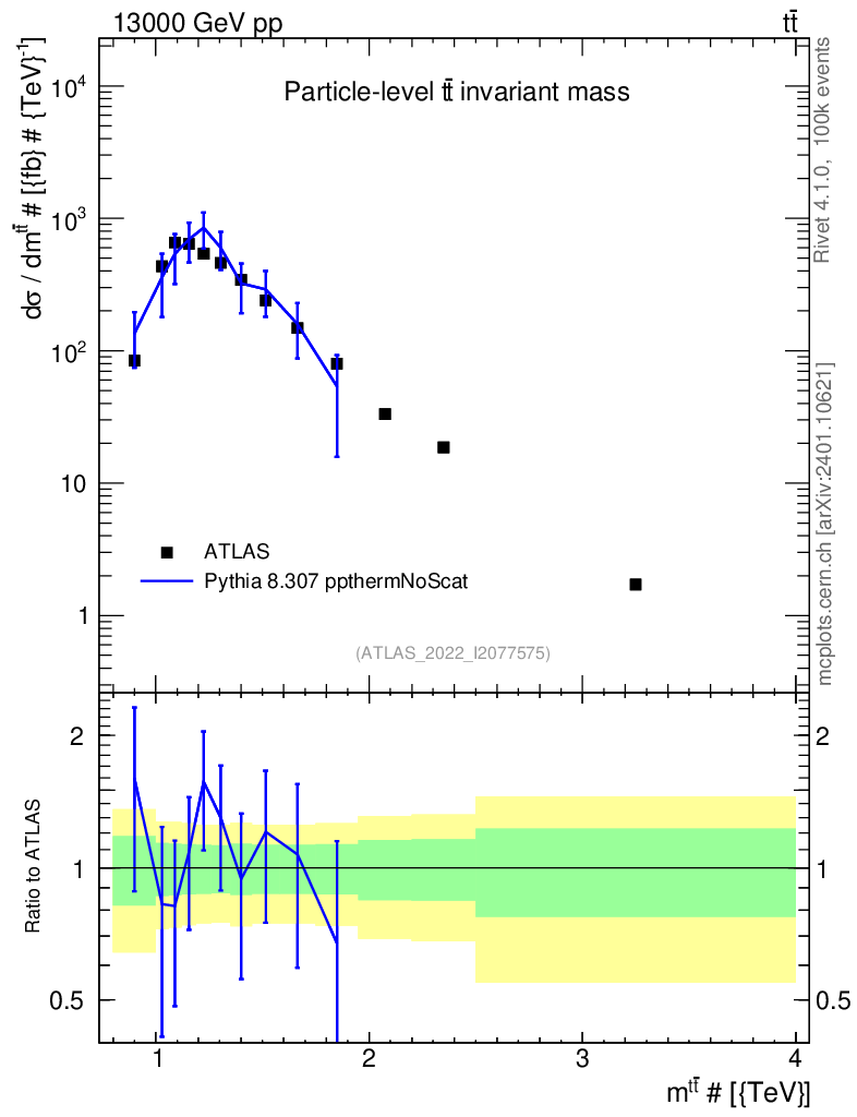 Lines: data, pythia8 8.307 ppthermNoScat |