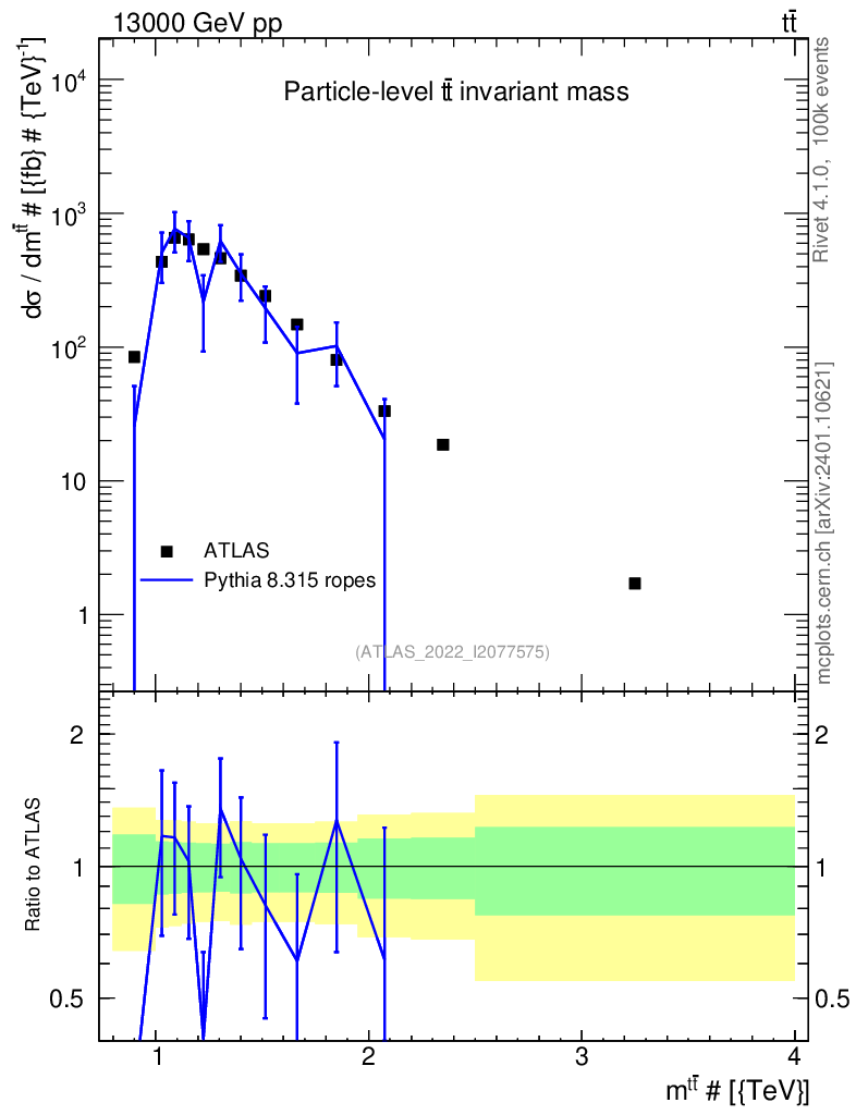 Lines: data, pythia8 8.315 ropes |