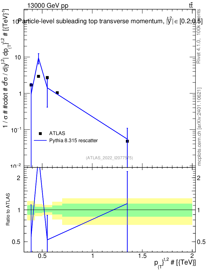 Lines: data, pythia8 8.315 rescatter |