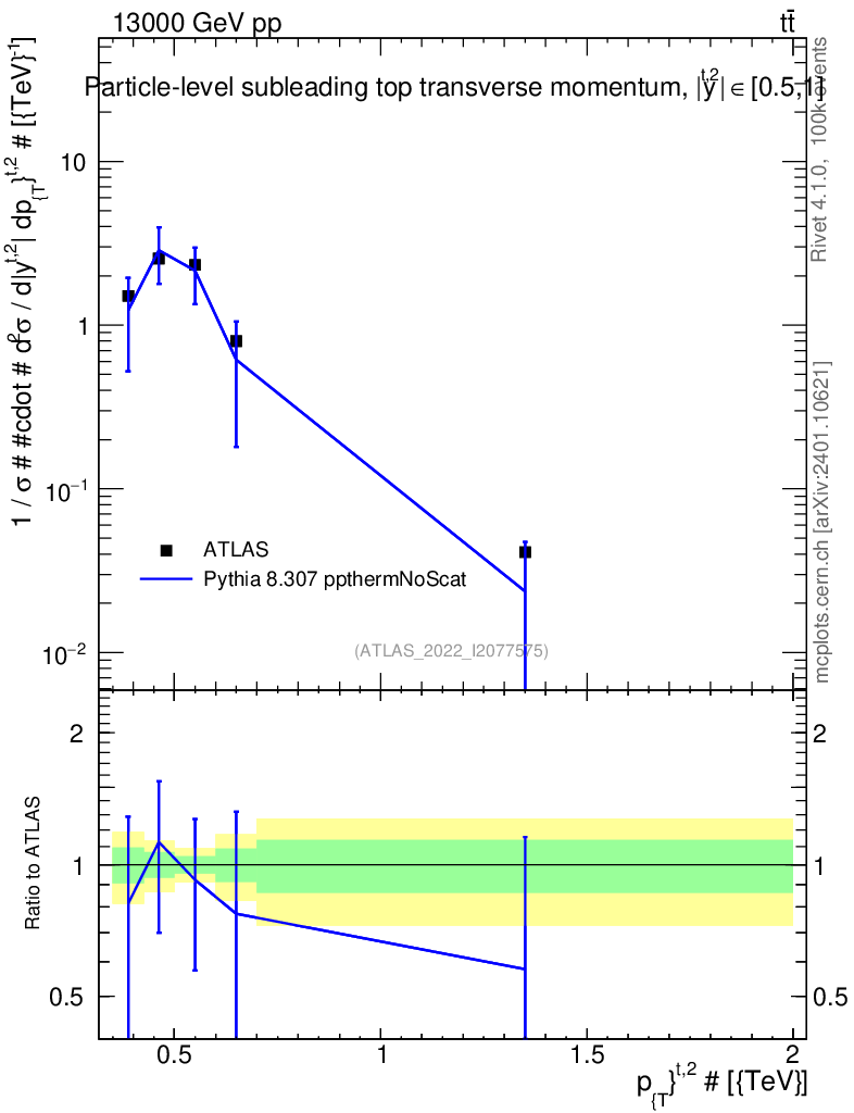 Lines: data, pythia8 8.307 ppthermNoScat |