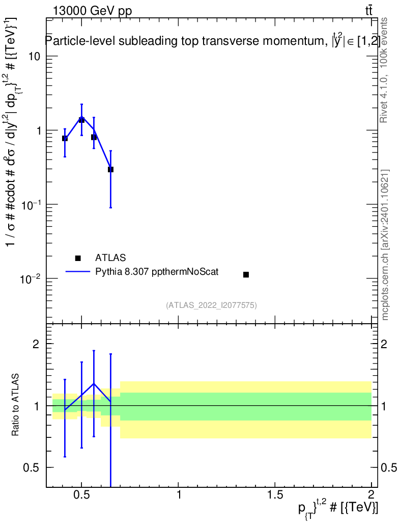 Lines: data, pythia8 8.307 ppthermNoScat |