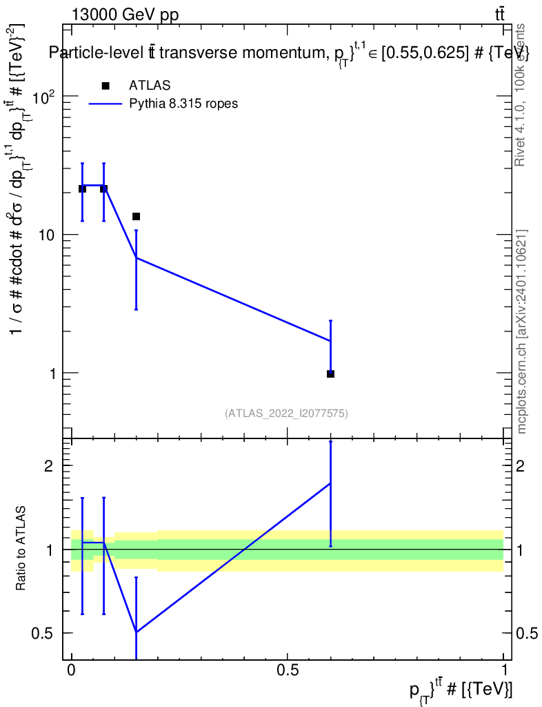 Lines: data, pythia8 8.315 ropes |