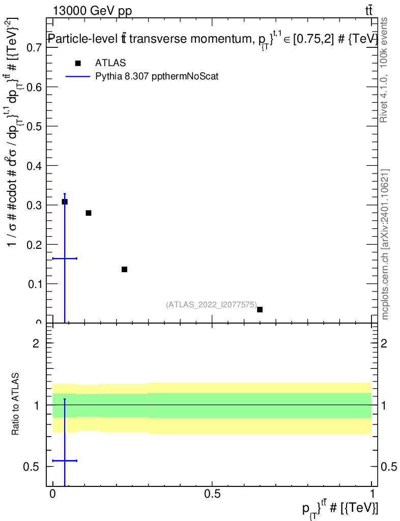 Lines: data, pythia8 8.307 ppthermNoScat |