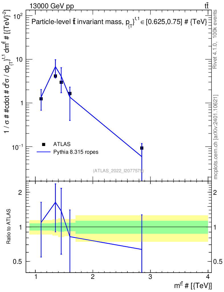 Lines: data, pythia8 8.315 ropes |