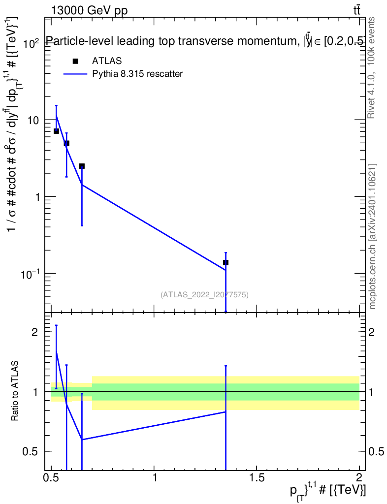 Lines: data, pythia8 8.315 rescatter |