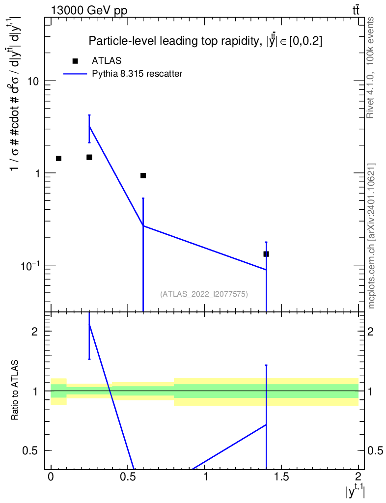 Lines: data, pythia8 8.315 rescatter |