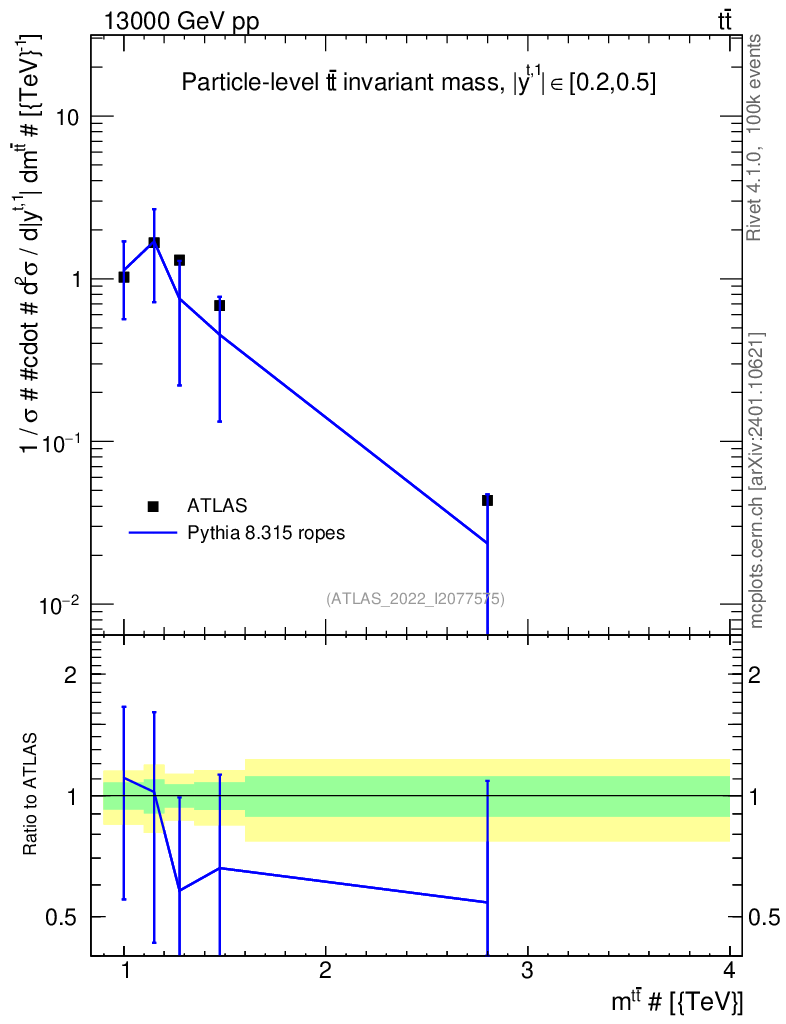 Lines: data, pythia8 8.315 ropes |