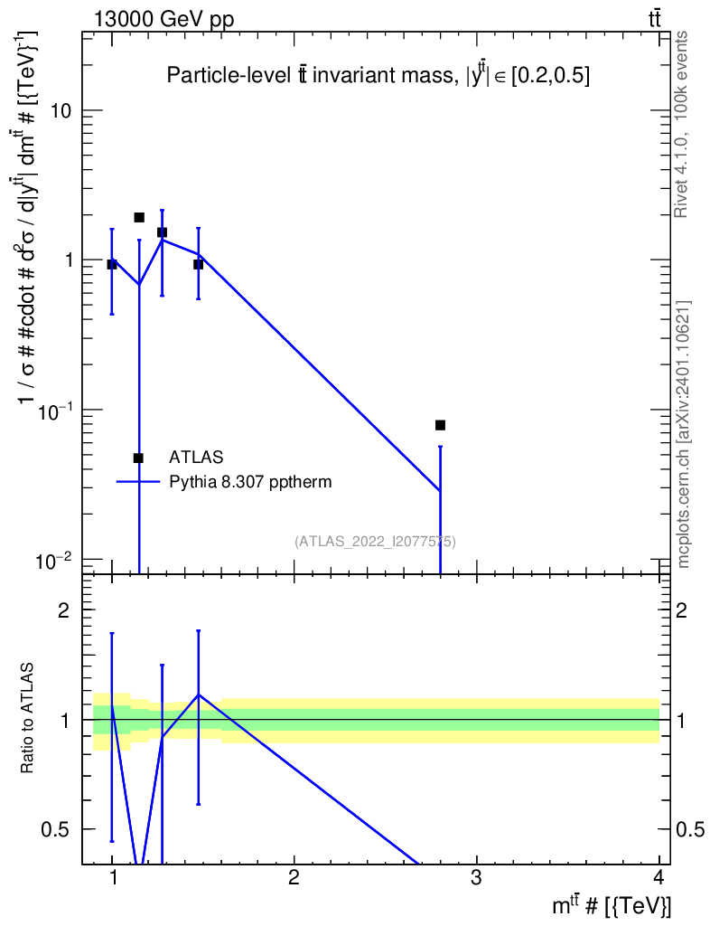 Lines: data, pythia8 8.307 pptherm |