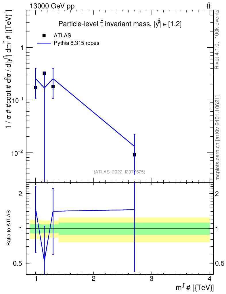 Lines: data, pythia8 8.315 ropes |
