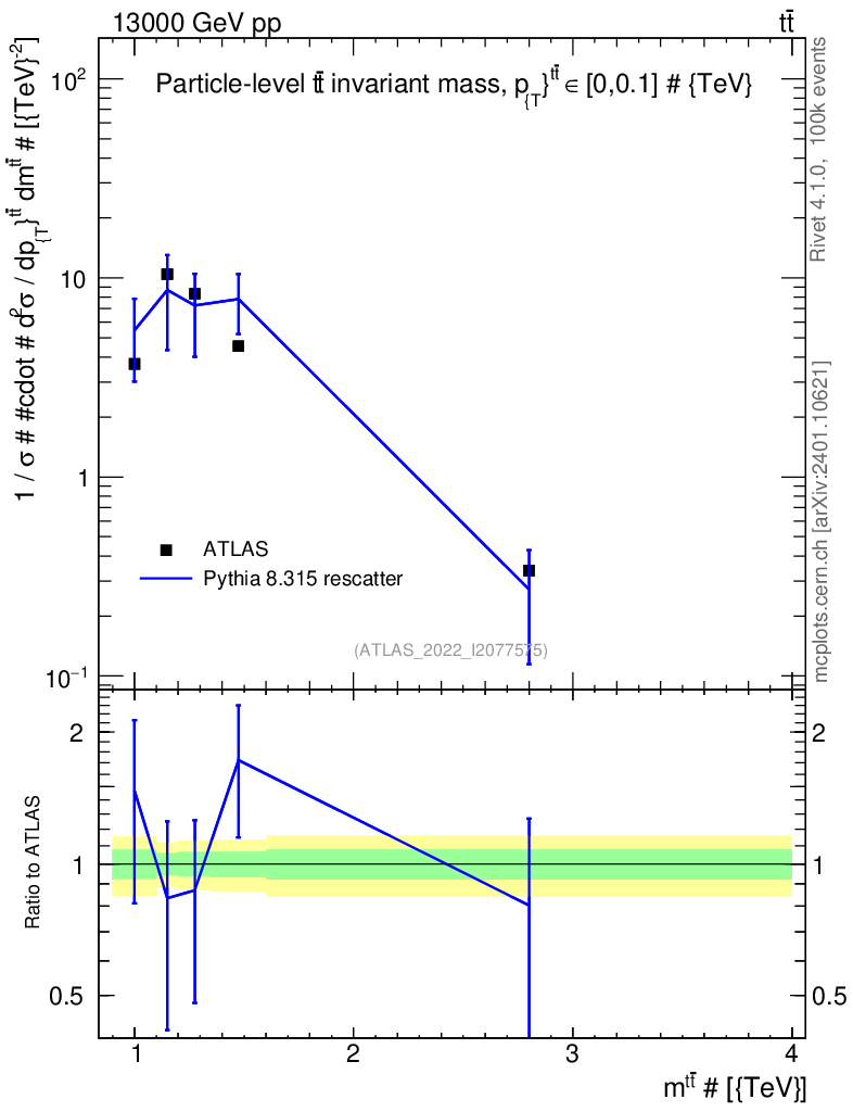 Lines: data, pythia8 8.315 rescatter |