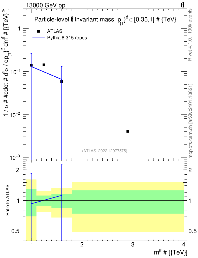 Lines: data, pythia8 8.315 ropes |