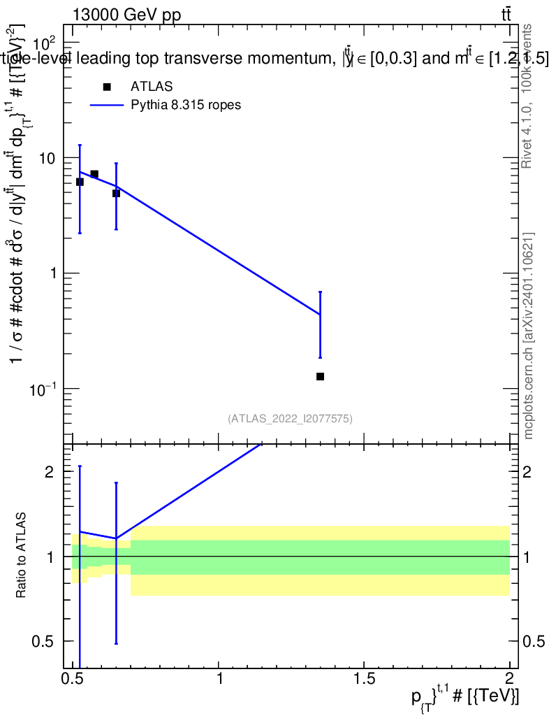 Lines: data, pythia8 8.315 ropes |