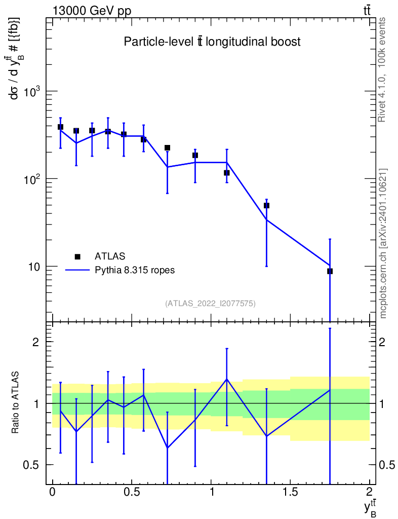 Lines: data, pythia8 8.315 ropes |