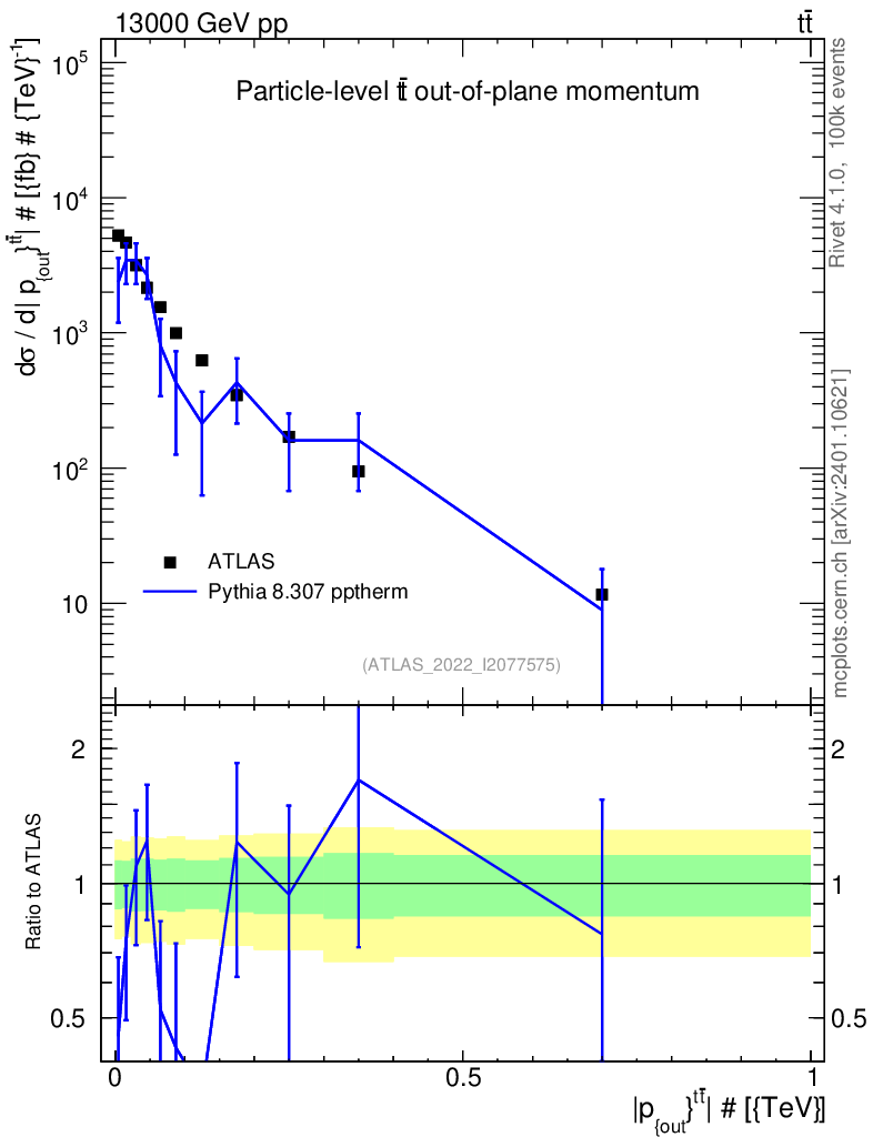 Lines: data, pythia8 8.307 pptherm |