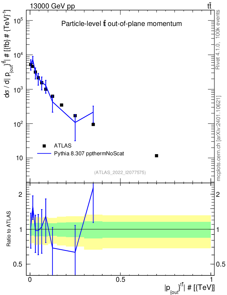 Lines: data, pythia8 8.307 ppthermNoScat |