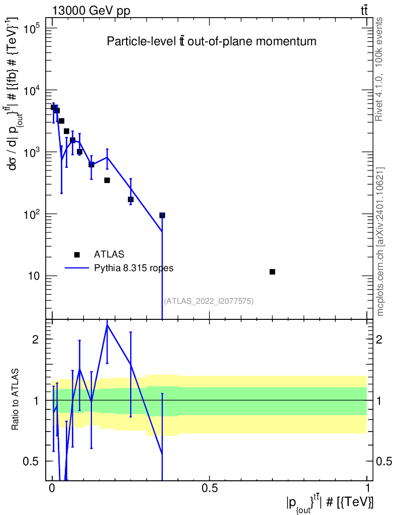 Lines: data, pythia8 8.315 ropes |