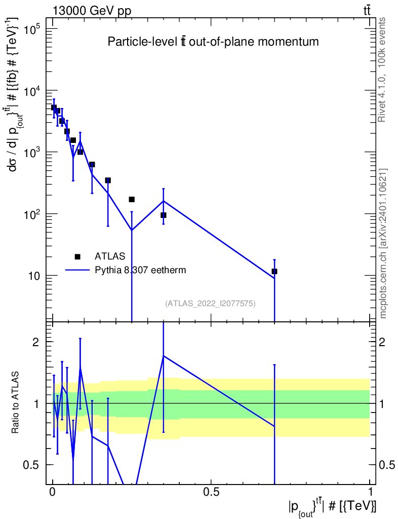 Lines: data, pythia8 8.307 eetherm |