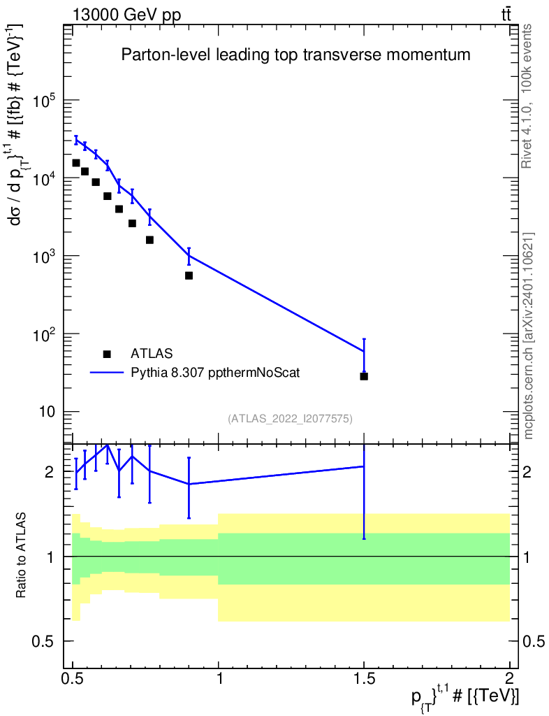 Lines: data, pythia8 8.307 ppthermNoScat |