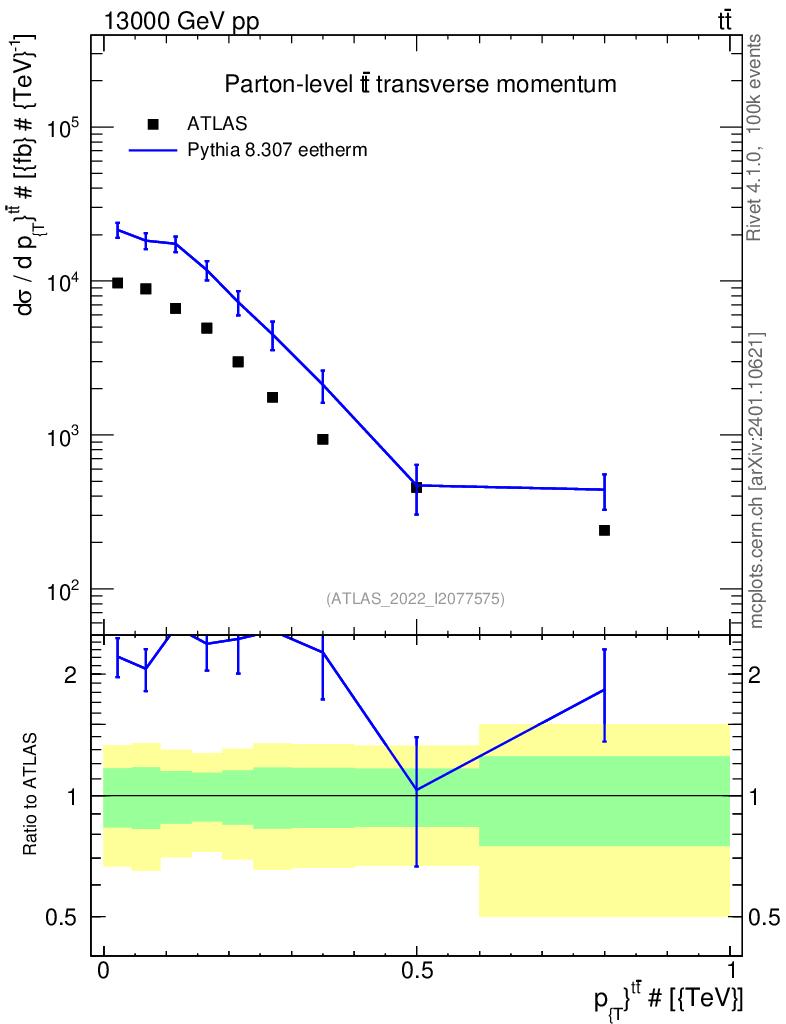 Lines: data, pythia8 8.307 eetherm |
